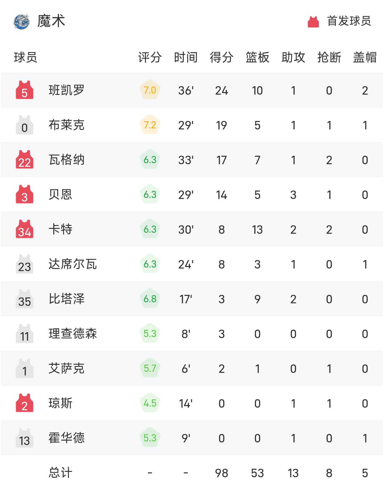 กิดี้ทำไป 21 แต้ม 8 รีบาวน์และ 3 แอสซิสต์เพื่อพาทีมคว้าชัยชนะ บันเกโรทำสถิติสูงสุดในเกม 24 แต้ม 10 รีบาวด์ 1 แอสซิสต์