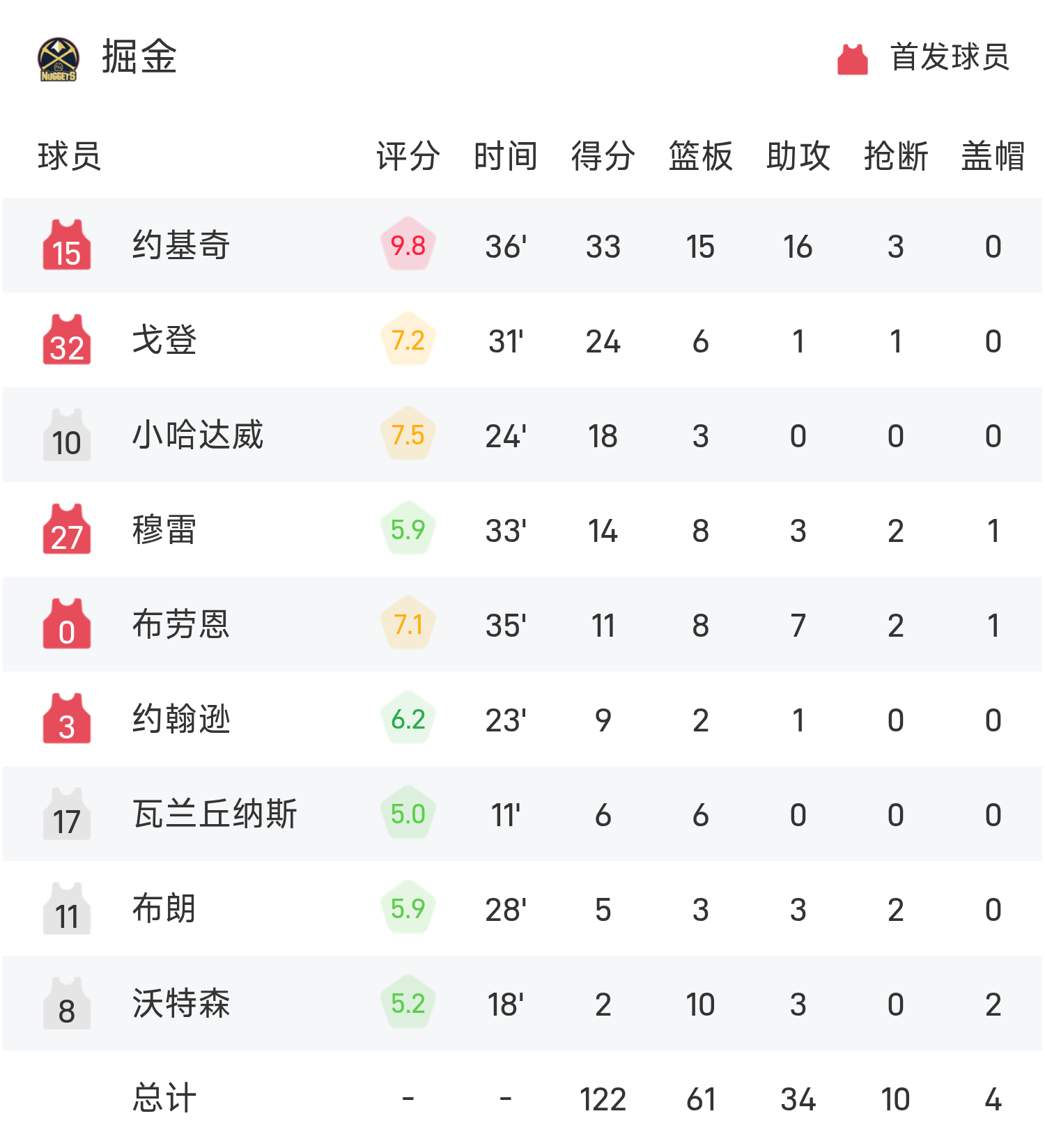 รายงานเกม NBA โยคิช 33 แต้ม 15 รีบาวด์ 16 แอสซิสต์ นักเก็ตเอาชนะฮีต 122-112