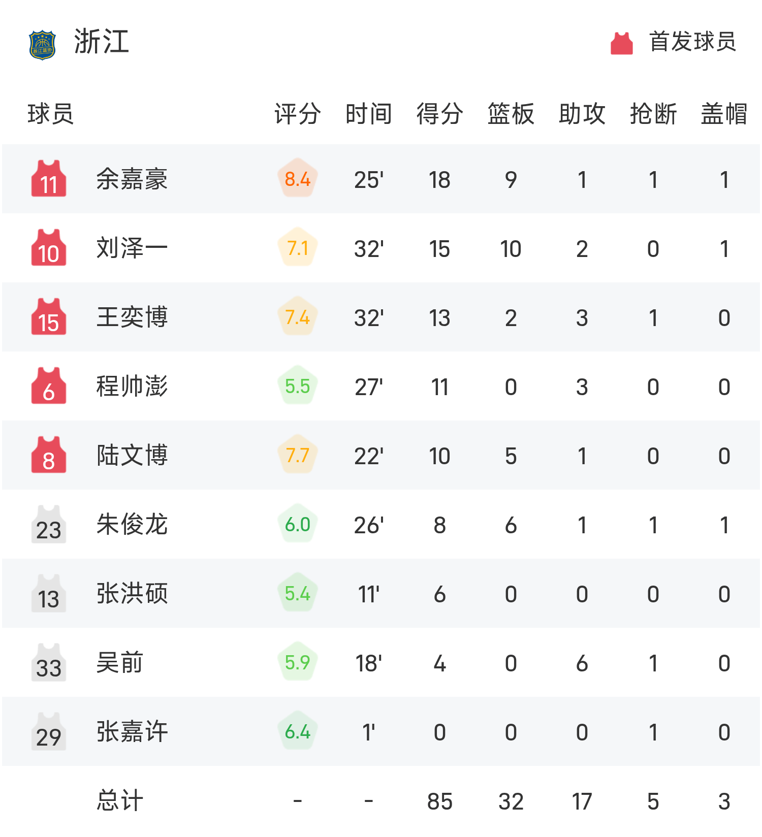 6686 ข่าวกีฬาเมื่อวันที่ 6 พฤศจิกายน ในการแข่งขันกลุ่มบาสเกตบอลชายชายแห่งชาติ เจ้อเจียงเผชิญหน้ากับซานตง จบเกม เจ้อเจียง เอาชนะ ซานตง 85-81 หยู เจียห่าว ยิง 18 แต้ม 9 รีบาวด์ 1 แอสซิสต์ นำทีมคว้าชัย หลี่ เซียงโป ทำคะแนนสูงสุดในเกม 22 แต้ม 8 รีบาวด์ 3 แอสซิสต์