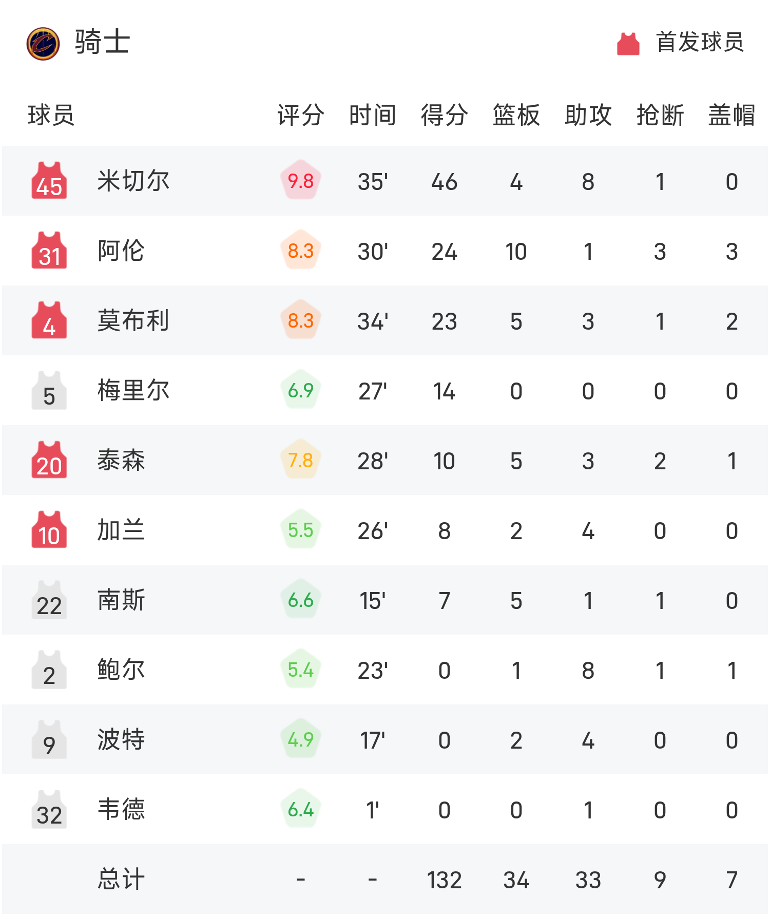 มิทเชลทำคะแนนสูงสุดในเกม 46 แต้ม 4 รีบาวน์และ 8 แอสซิสต์ นำทีมคาวาเลียร์สคว้าชัยชนะ