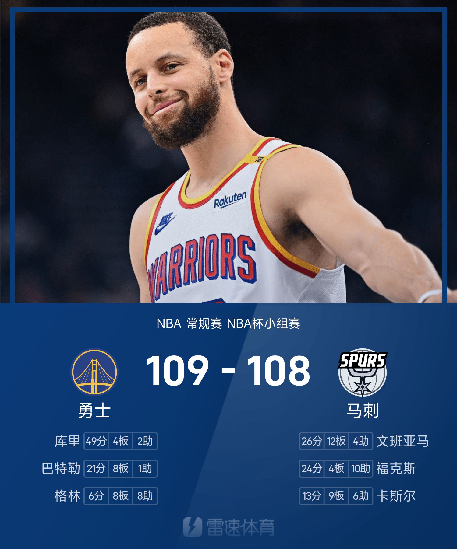 ด้วยการโยนโทษที่สำคัญ Curry ทำคะแนนสูงสุดในเกม 49 แต้ม บวก 4 รีบาวน์ และ 2 แอสซิสต์ นำ Warriors คว้าชัยชนะเหนือ Spurs อย่างหวุดหวิด