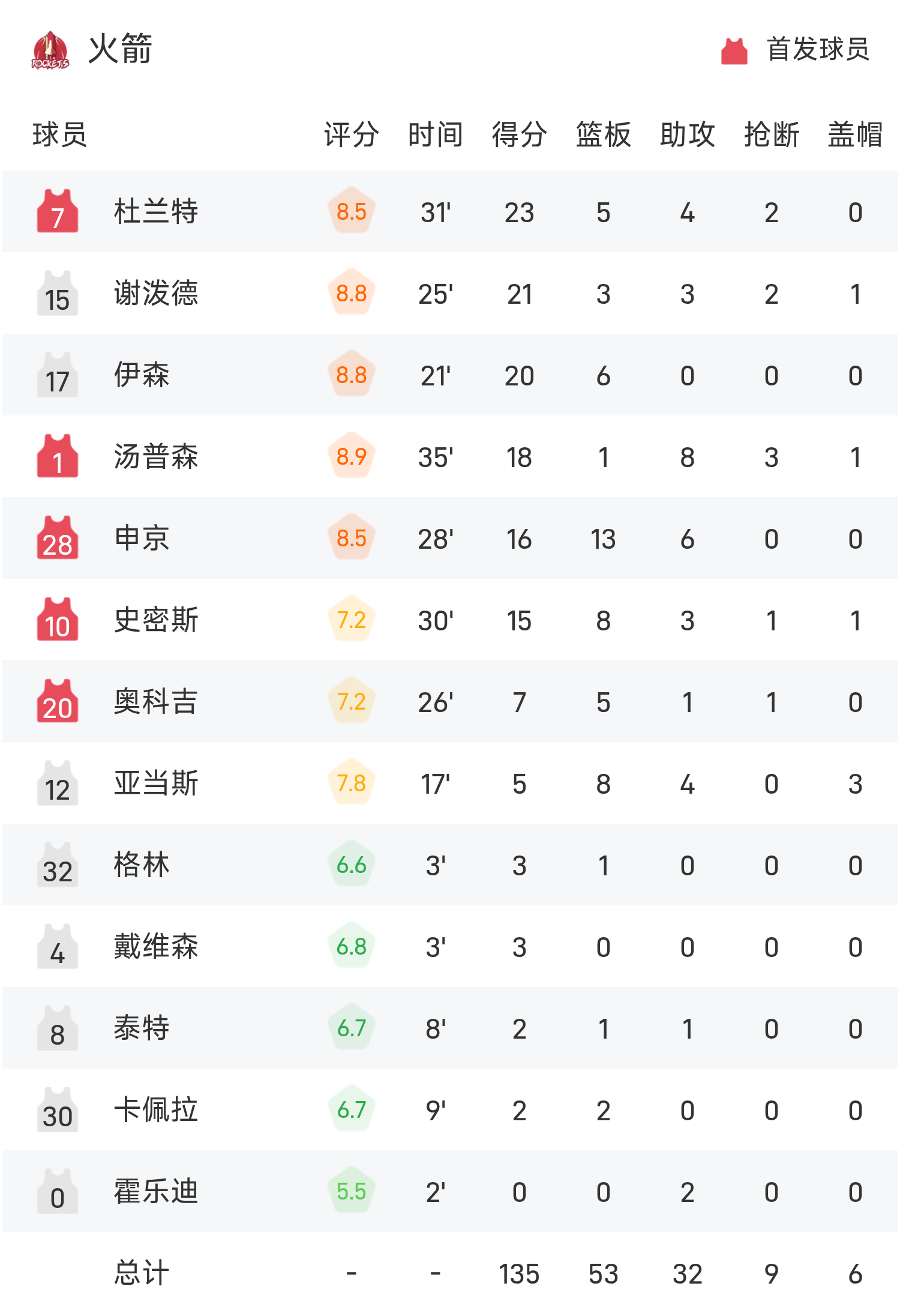 ดูแรนท์ทำคะแนนได้ 23 แต้ม 5 รีบาวด์และ 4 แอสซิสต์เพื่อนำทีมคว้าชัยชนะ ส่วนซอล์คทำคะแนนสูงสุดในเกมได้ 25 แต้ม 11 รีบาวด์และ 4 แอสซิสต์