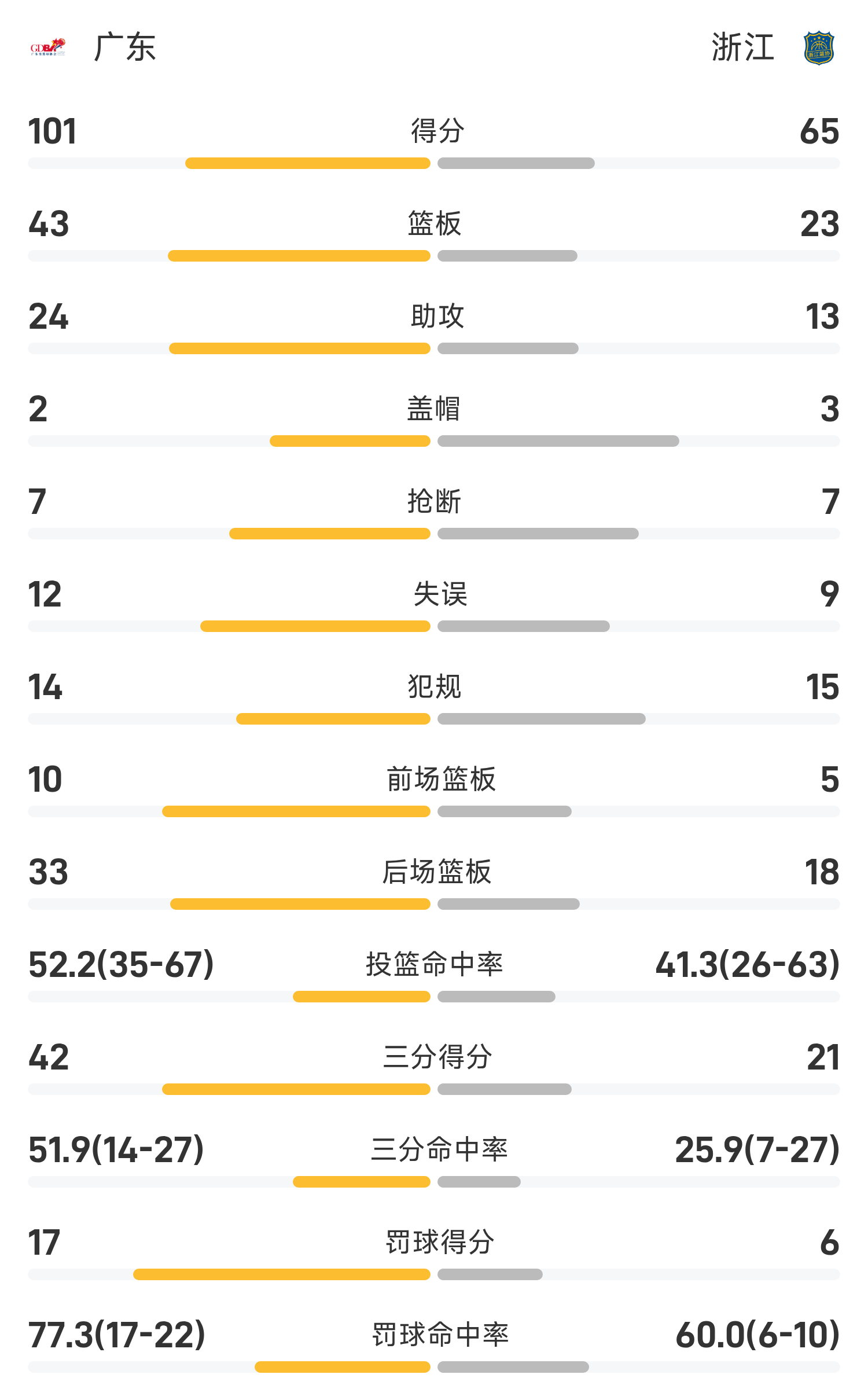 จบเกม เจ้อเจียง แพ้ กวางตุ้ง 65-101