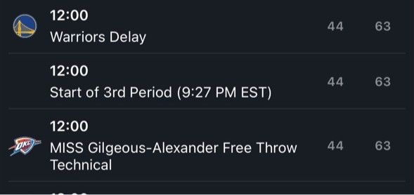 เป็นที่น่าสังเกตว่า Warriors ถูกผิวปากเนื่องจากมีการละเมิดทางเทคนิคก่อนเริ่มครึ่งหลังเนื่องจากพวกเขามาสาย กลับมาจากการพักครึ่งเวลา