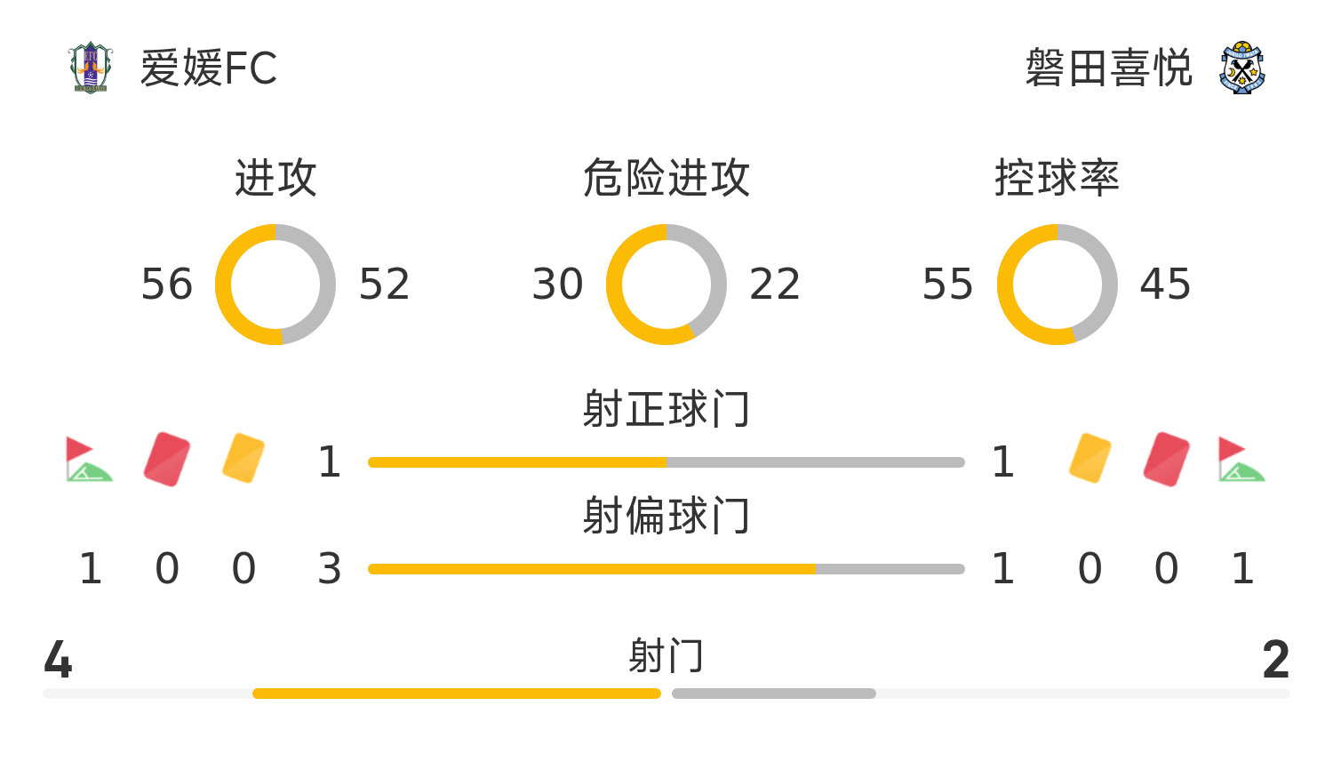 36’ ผู้เล่นเอฮิเมะหยุดบอลในโซนสามวินาทีและหยุดบอลออกนอกขอบเขตโดยตรง