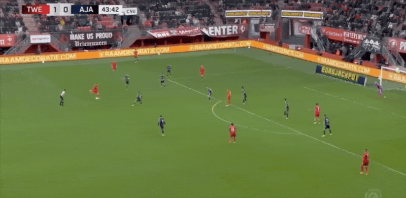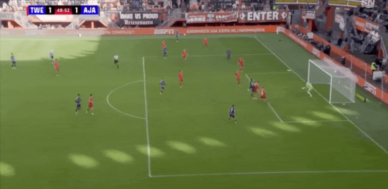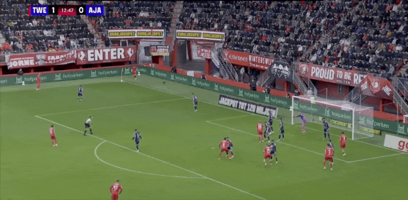 18' เวอร์ฮอสต์หันกลับมาและเลี้ยงบอลในโซนสามวินาทีแล้วยิงประตูแรกของเกมให้อาแจ็กซ์