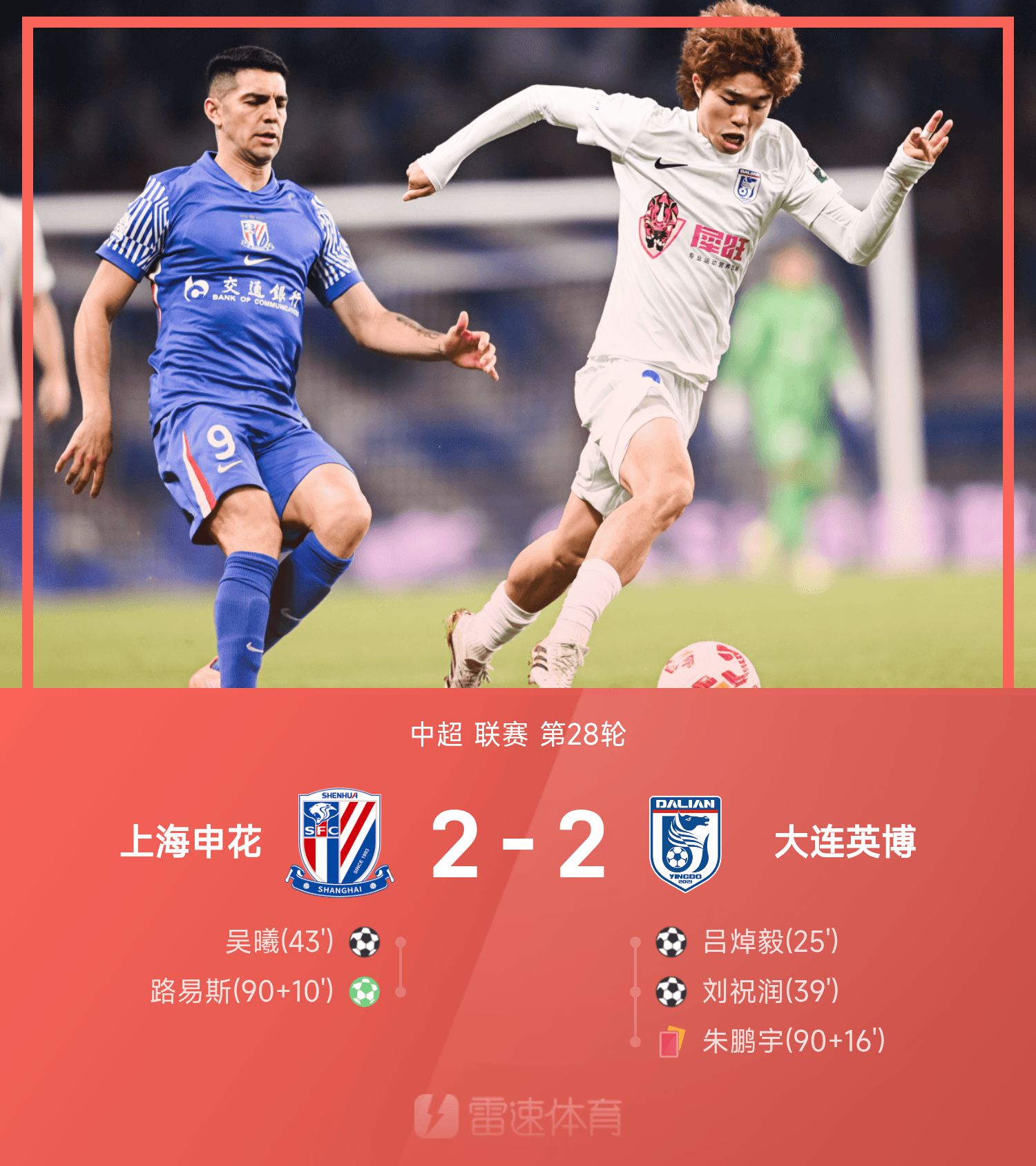 รายงานการแข่งขันไชนีสซูเปอร์ลีก อู๋ซีมีส่วนร่วม + คะแนน, ลุยซ์เสมอในช่วงทดเวลาบาดเจ็บ, เสิ่นหัว 2-2 หยิงโป
