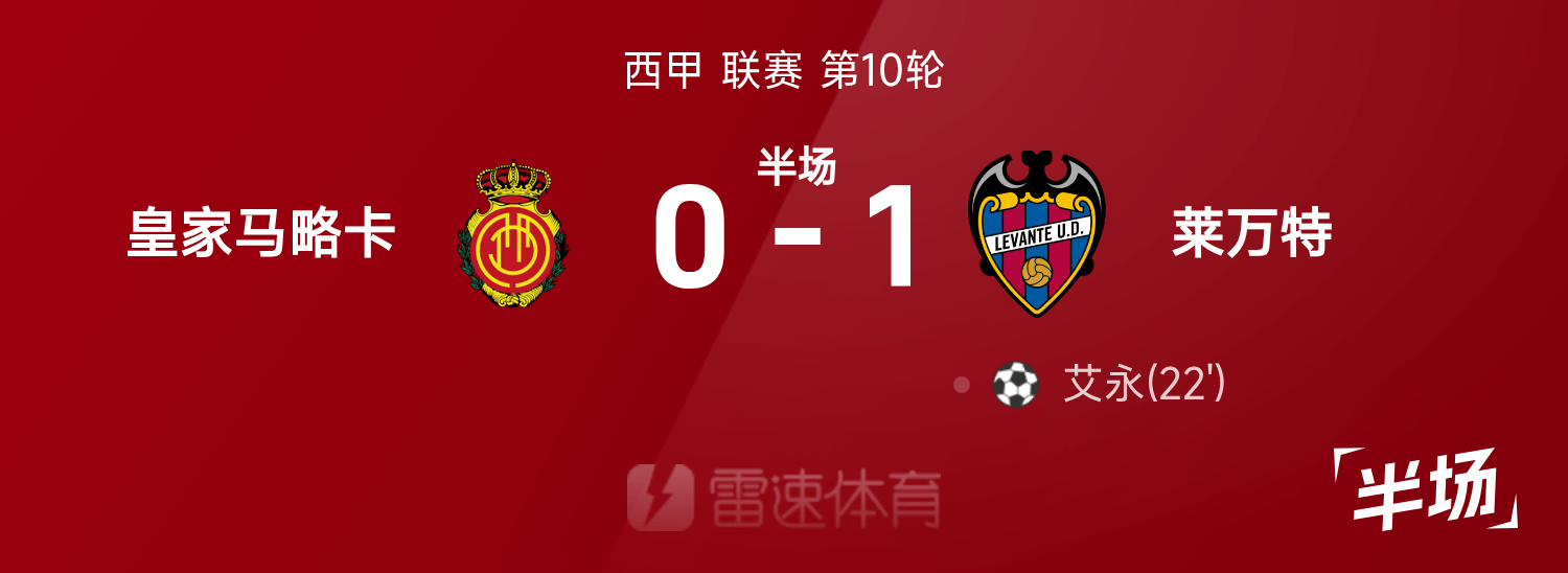 พักครึ่งลาลีกา : อ้ายหยงไถยิงลูกเตะมุมไกล, เลบานเต้นำมายอร์ก้า 1-0 ชั่วคราว