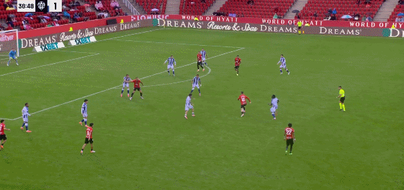 เรอัล มายอร์ก้า รายชื่อตัวจริง: 25-คูเอลลาร์, 13-เบิร์กสตรอม, 2-โมเรย์, 27-โลเปซ, 26-แซลลี่, 5-มาสคาแลร์, 6-ซานเชซ, 20-ตอร์เร, 9-แพลตต์, 11-ทาคูมะ อาซาโน, 19-ลาเบรส, 30-โดเมเน็ค
