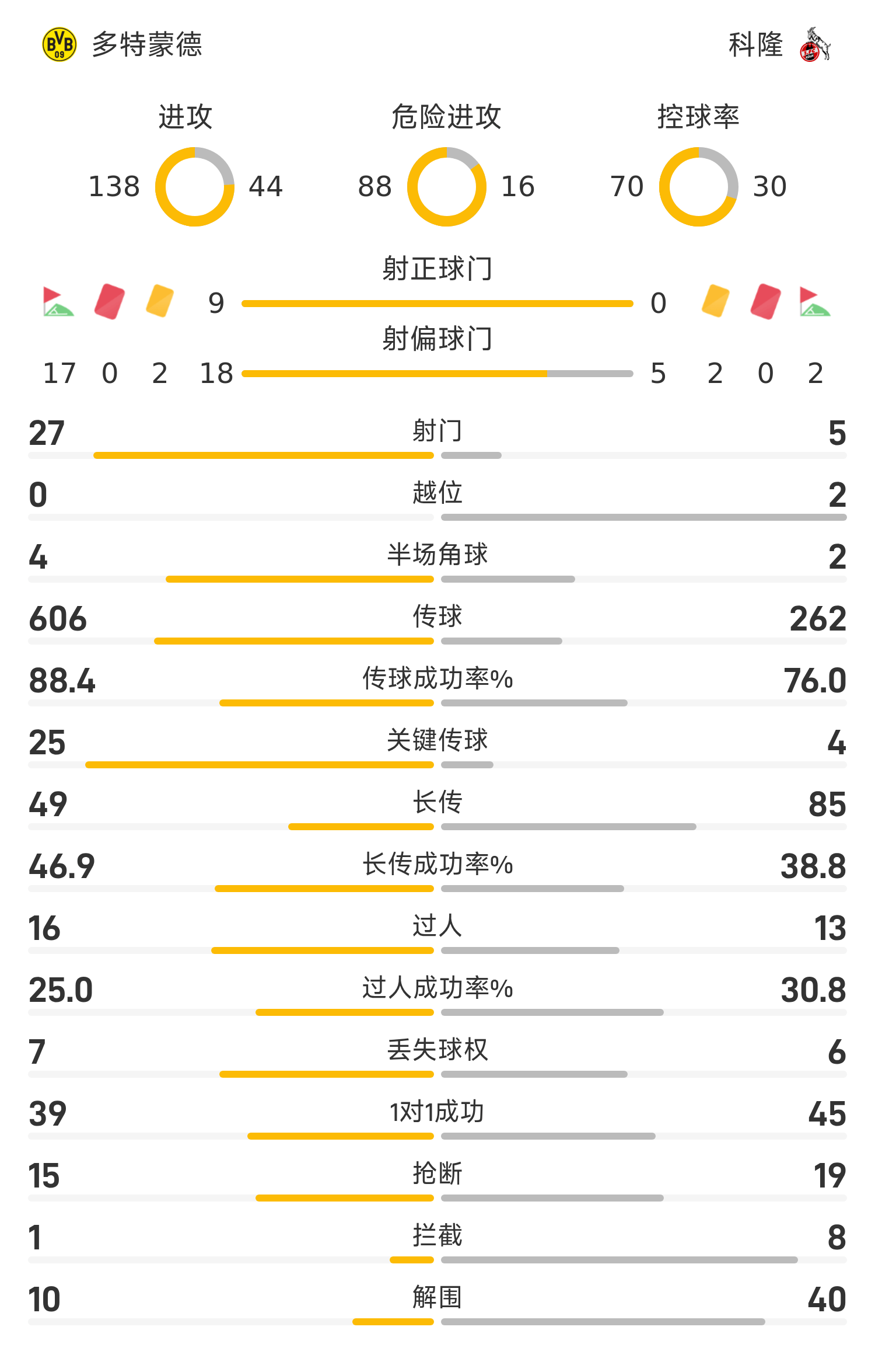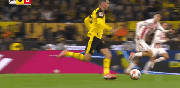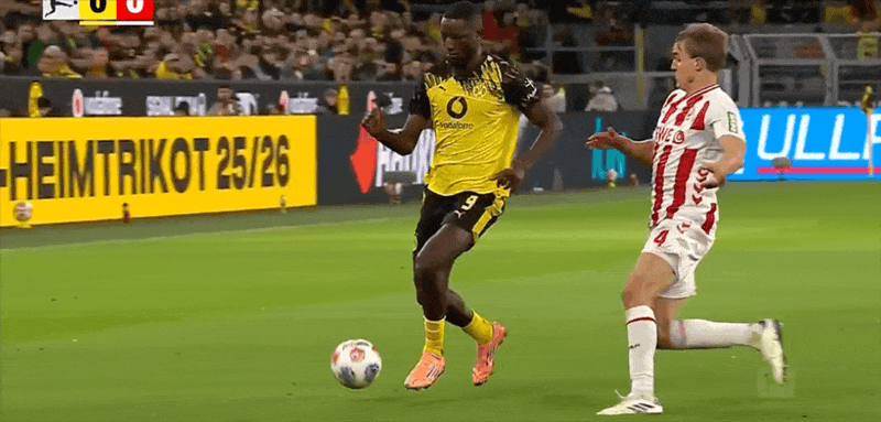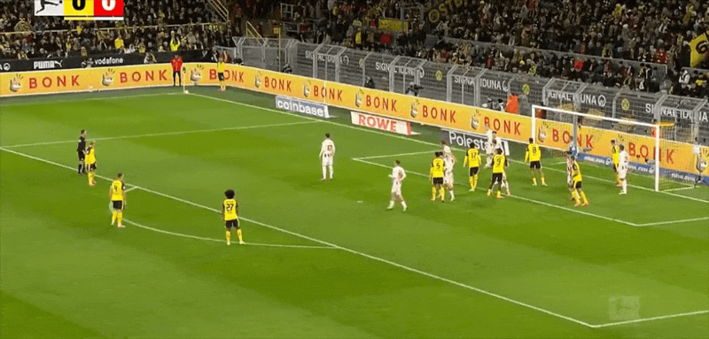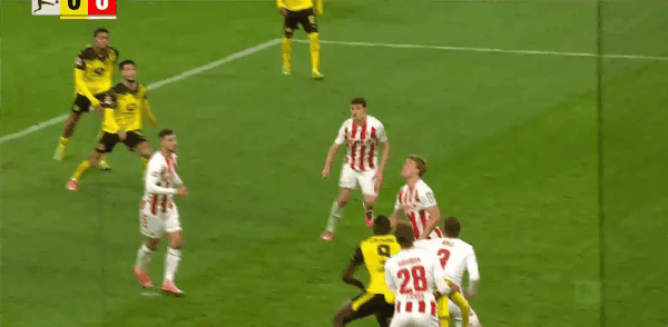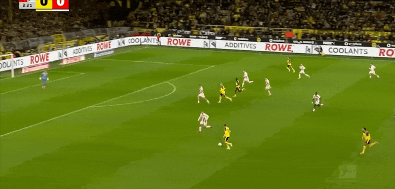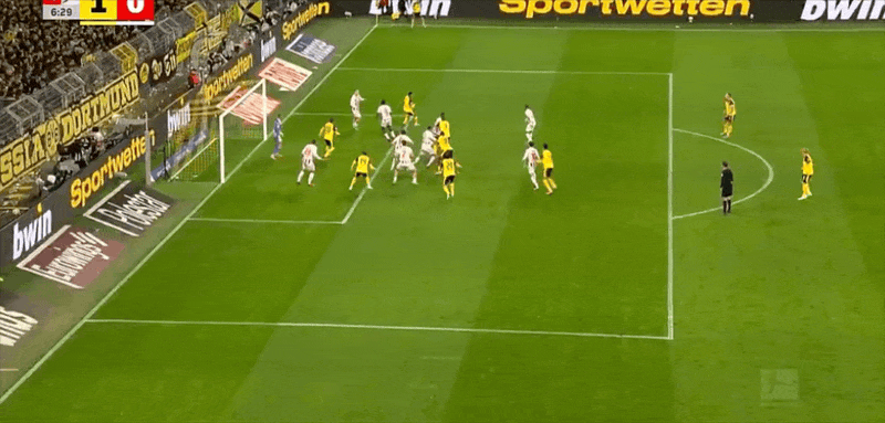 10' บอลแนวหน้าของดอร์ทมุนด์ทำให้เกิดความสับสนวุ่นวาย แอนตันผลักมุมไกลจากระยะใกล้และถูกสกัดกั้นจากท้ายเกม line