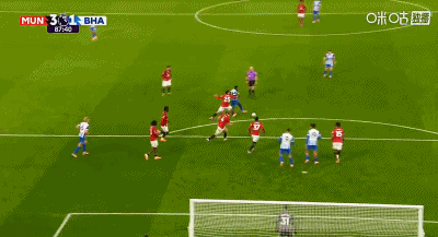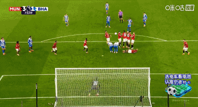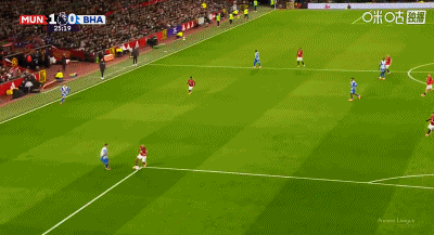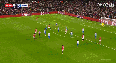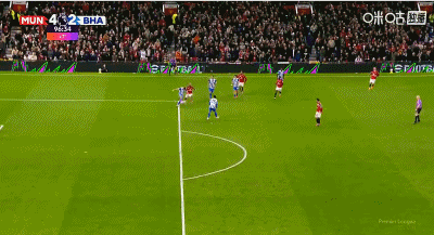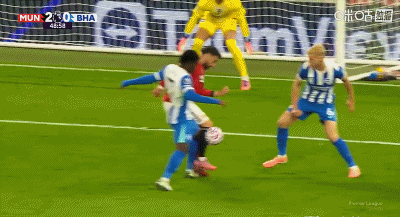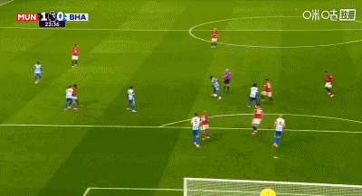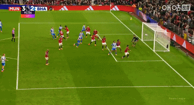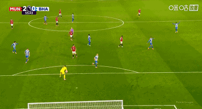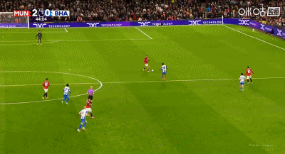 การวอลเลย์ 6 หลาของ 48'B Fee ถูกแวร์บรูเชนสกัดกั้นโดยไม่รู้ตัว แมนเชสเตอร์ ยูไนเต็ด ยังคงเป็น 2-0 ไบรท์ตัน