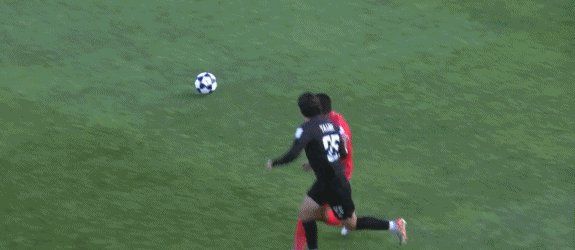 55' เรือน กวงไห่ เลือกลูกยิงนอกเขตสามวินาทีแล้วตีบอลให้สูงโดยตรง