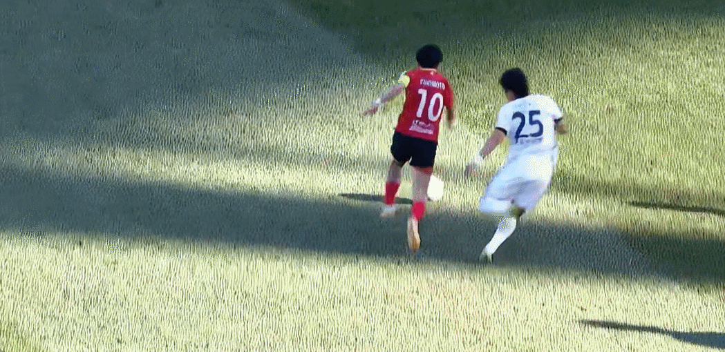 23’ คูนิโมโตะ ยี่หยู เตะฟรีคิกเข้าประตูด้วยเท้าซ้าย บอลพลาดเสาและชนตาข่ายข้าง