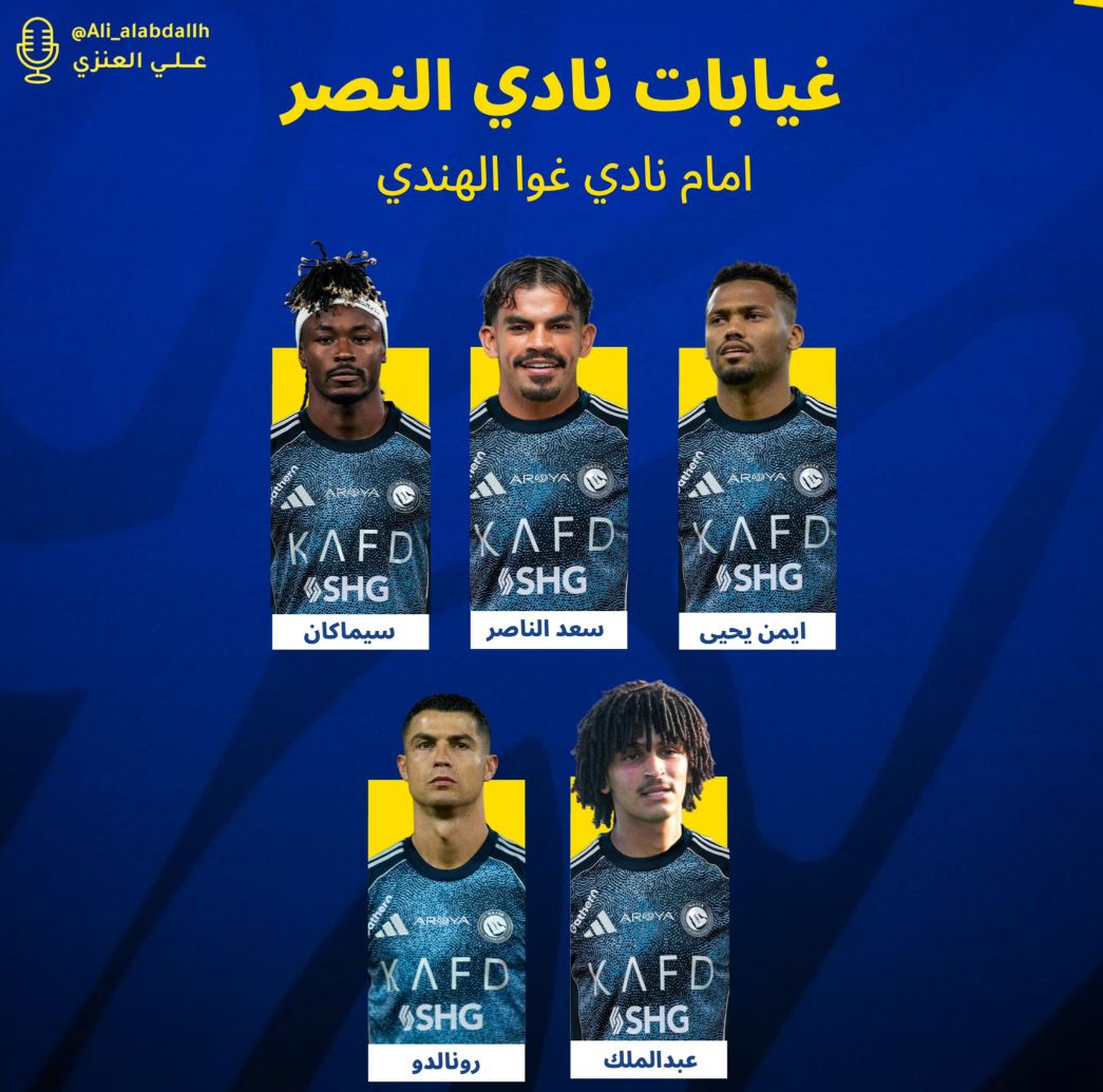 C Ronaldo พักผ่อนในเกมนี้ และ Simakan, Nasser และ Yahya ไม่อยู่เนื่องจากอาการบาดเจ็บ