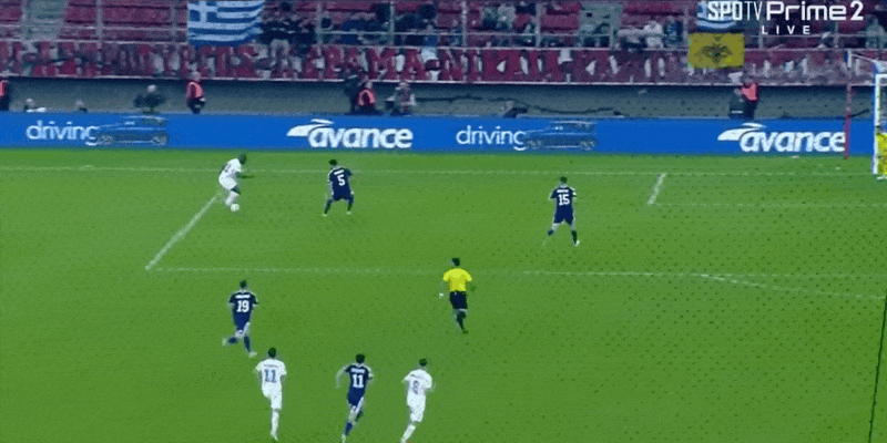 รายชื่อผู้เล่นตัวจริงของกรีซ: 1-Vlachodimos, 21-Tsimikas, 5-Resos, 2-Vajianidis, 3-Koulierakis, 11-Bakstas, 6-Kourbelis, 10-Szolis (90'9-โคสโตรัส), 19-คาเรซาส (7 6'7-มาซูรัส), 8-โมซากิติส (90'17-ฮาซีเดียกอส), 14-พาฟลิดิส (43'18-เทต)
