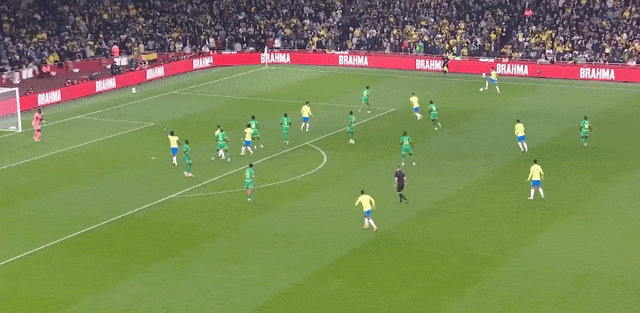 รายชื่อผู้เล่นตัวจริงของบราซิล: 23-Ederson, 6-Sandro, 4-Marquinhos, 2-Militão, 3-Gabriel, 5-Casemiro, 8-Guimarães, 7-Vinicius, 21-Cunha, 10- Rodrigo, 20-เอสเตวาน