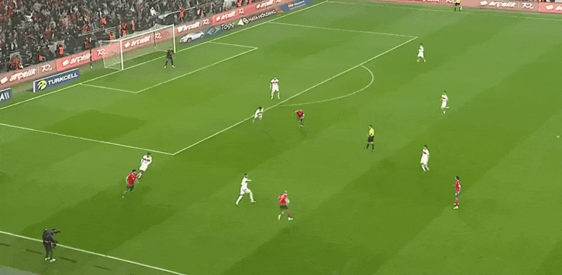 12’ ยิลดิซทะลุเขตโทษจากด้านซ้ายและลูกยิงต่ำของอัคตูโคกลูก็พลาดประตู
