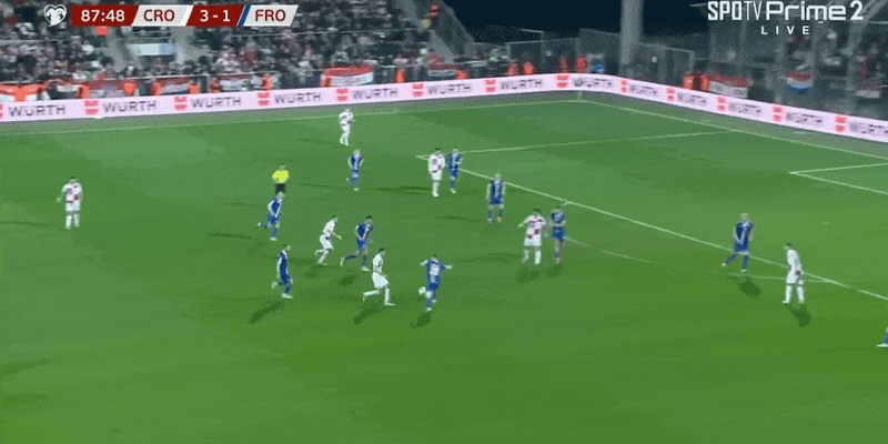 52' สตานิซิชจ่ายบอล บอลเข้าเขตโทษแล้วโหม่งของครามาริชเด้งออกเล็กน้อย