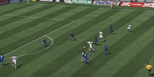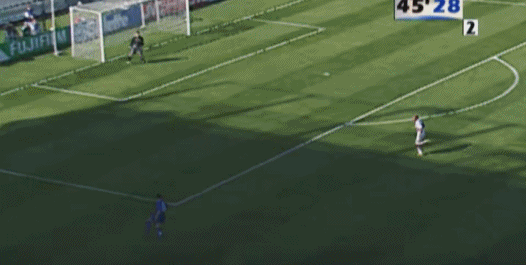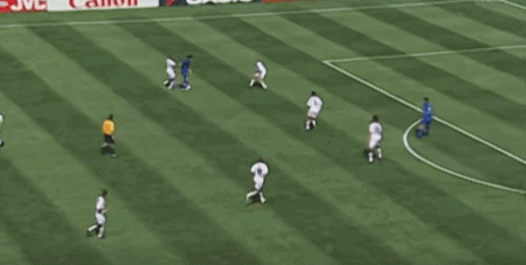 ต่อจากนั้น เดล ปิเอโร รับบอลจากทางซ้าย แกว่งไปทางซ้ายและขวา และสุดท้ายก็เหยียบบอลและล้มลงกับพื้น