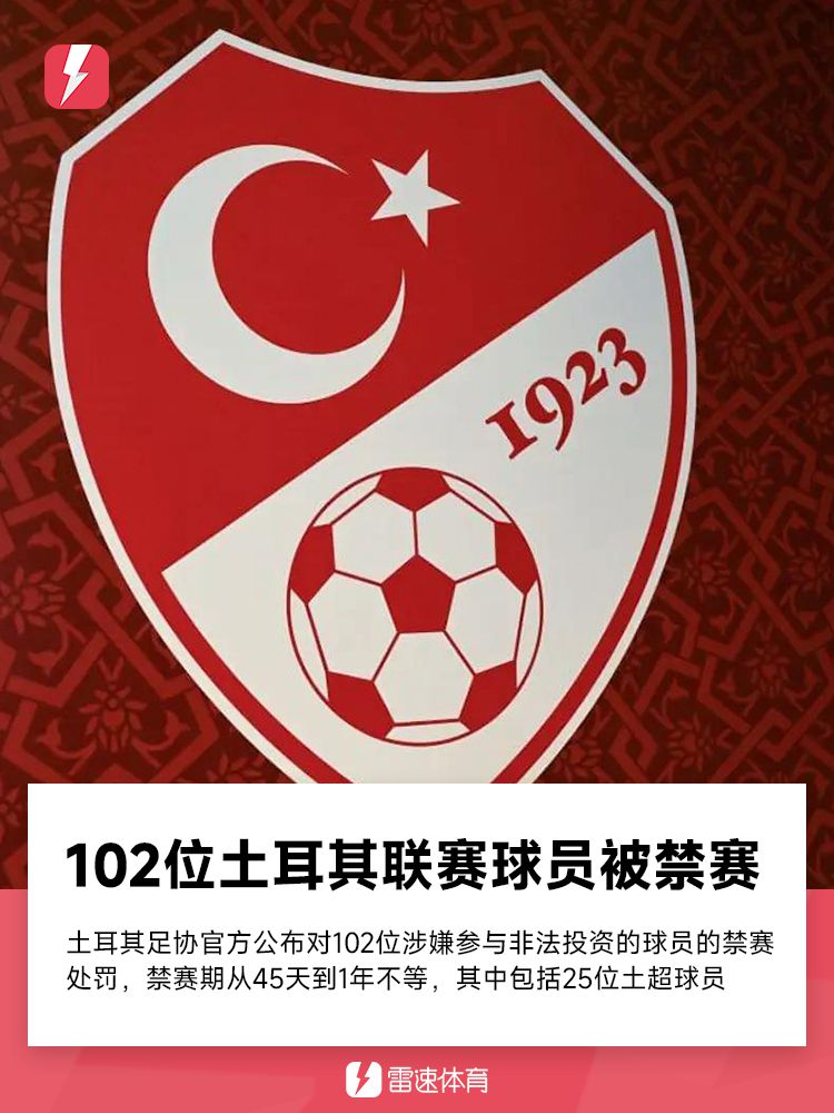 สมาคมฟุตบอลตุรกี: ผู้เล่น 102 คนที่เกี่ยวข้องกับการลงทุนที่ผิดกฎหมายถูกแบน รวมถึงผู้เล่น 25 คนจากซูเปอร์ลีกตุรกี