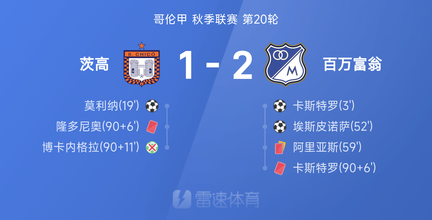 6686 ข่าวกีฬา เมื่อวันที่ 13 พฤศจิกายน ในรอบที่ 20 ของลีกฤดูใบไม้ร่วงลีกโคลอมเบียครั้งที่ 25 เศรษฐีเอาชนะ Cigao 2-1 ตลอดทั้งเกม เอสปิโนซ่า มีบทบาทโดดเด่น ทำได้ 1 ช็อต และ 1 จ่ายบอล คาสโตรทำประตูและทำประตู โมลินาทำประตูและไม่สามารถบันทึกผู้รักษาประตูได้ Bocanegra พลาดจุดในการนับถอยหลังในช่วงสุดท้าย คาสโตรและลอนดอนโดโน่เป็นสีแดง