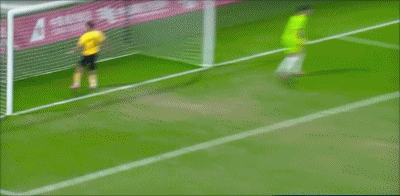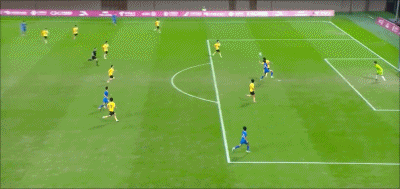 19' จงเหวิน หันกลับมาและเลี้ยงบอลในโซนสามวินาทีแล้ววอลเลย์ และบอลพลาดเป้า